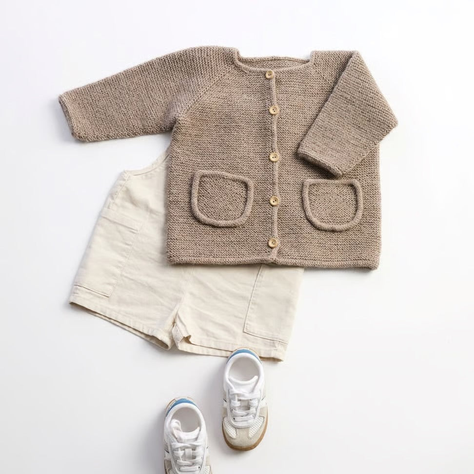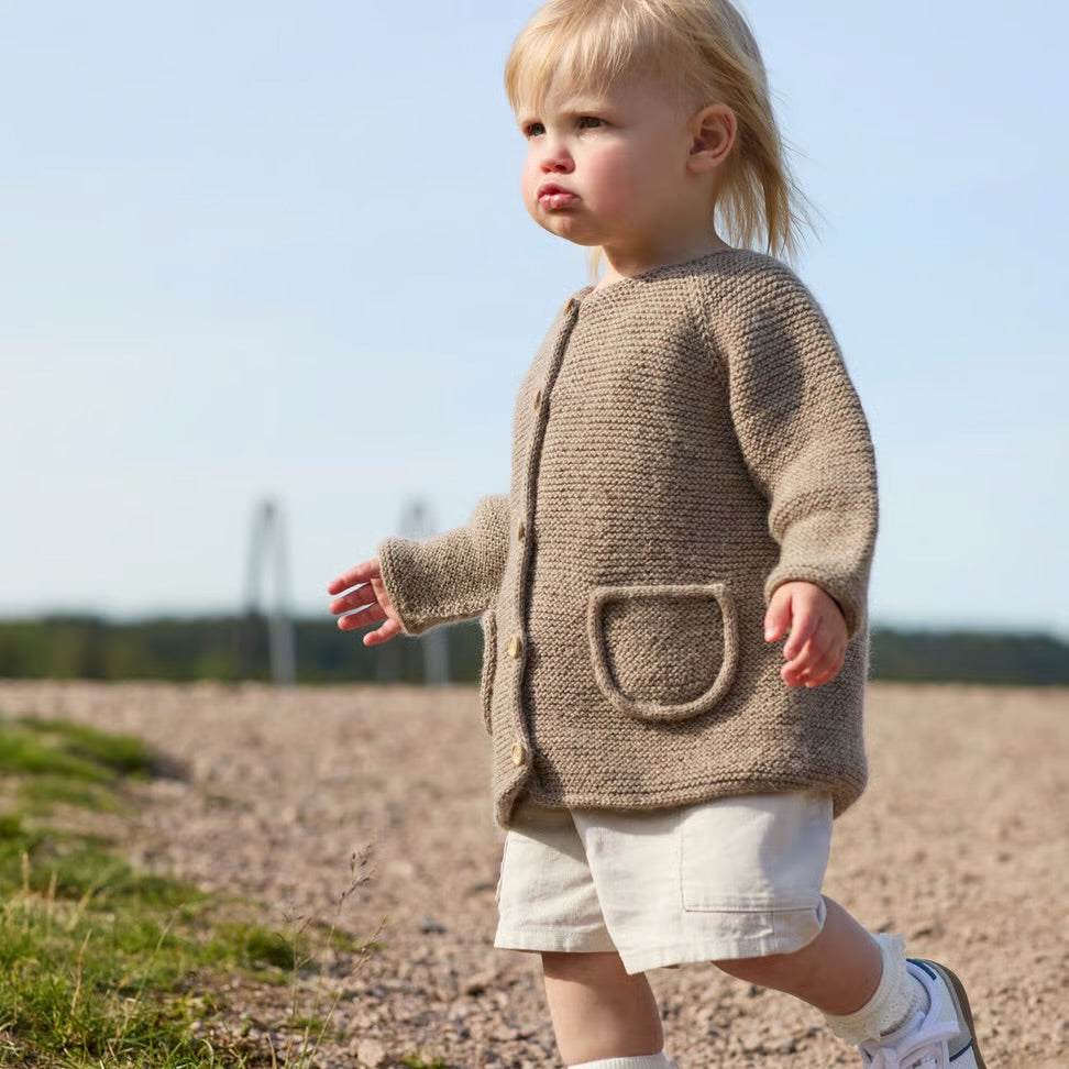 En lun og praktisk jakke med lommer og i-cord-kanter som passer godt for aktive barn! Bompijakken strikkes ovenfra og ned i Tumi, med raglanøkninger og rillestrikk som gir et mykt, fleksibelt plagg. Tumi er et garn som har ullens varme og alpakkaens mykhet, og egner seg godt til barn. Den romslige passformen gir god bevegelsesfri