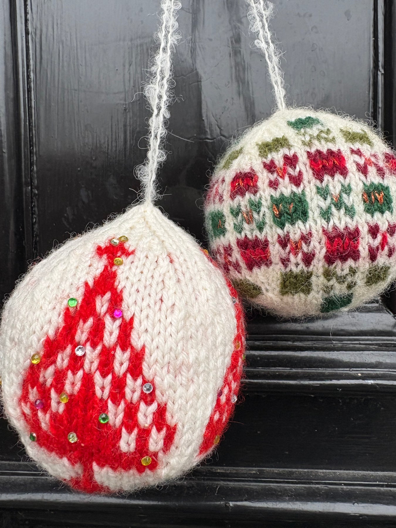 Du behøver ikke at have strikket en hel masse tidligere for at lave disse kugler. Pynt op med dem derhjemme, eller giv dem som gaver til venner og bekendte.