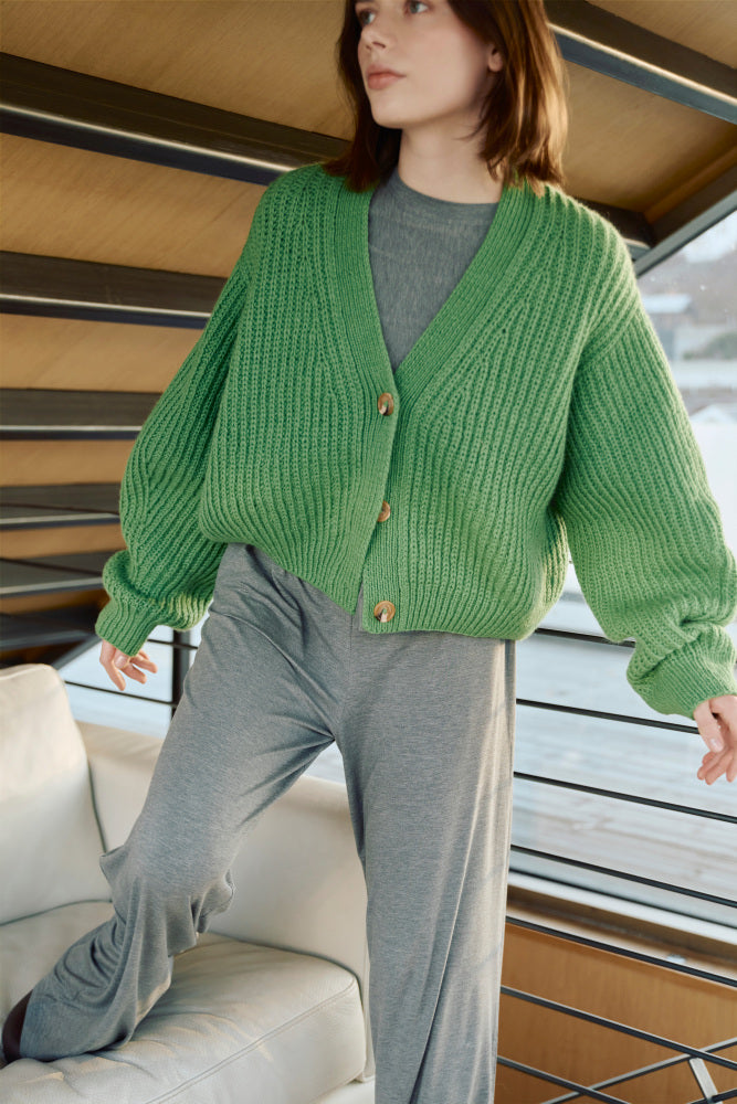 Kort Dagmarjakke er en moderne og stilren jakke i halvpatent, som strikkes oppefra og ned i blød, norsk lammeuld. Jakken har en European shoulder konstruktion og en dyb V-hals. Ærmerne formes ved indtagninger på ydersiden, hvilket giver synlige og dekorative linjer i jakken. Halvpatent giver dybde, struktur og et luksuriøst udtryk, og den bløde lammeuld giver en fornemmelse af at blive omfavnet af et varmt og blødt tæppe.