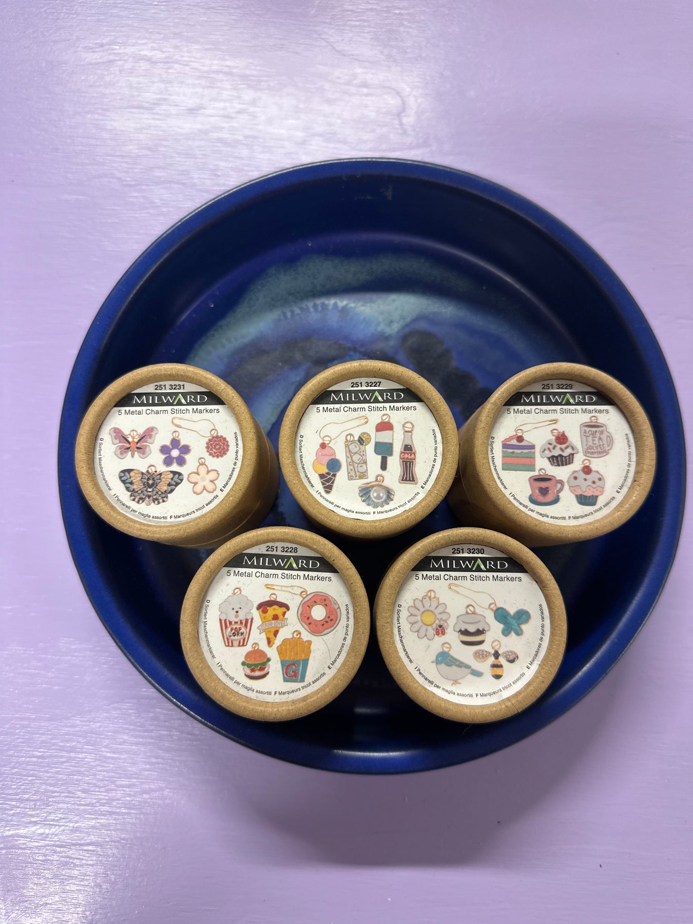 Fine rør med maskemarkører i metal, med søde charms