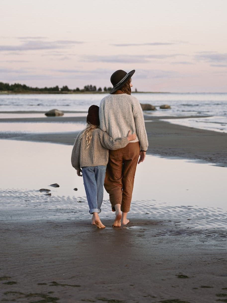 Bogen indeholder 17 opskrifter til hele familien, herunder sweatre, cardigan, kjole, T-shirt, tilbehør og sokker. Der er designs med både smukke snoninger og flerfarvestrik samt enkle, tidløse strukturer og de fleste er gradueret til at passe op til en brystvidde på 152 cm.